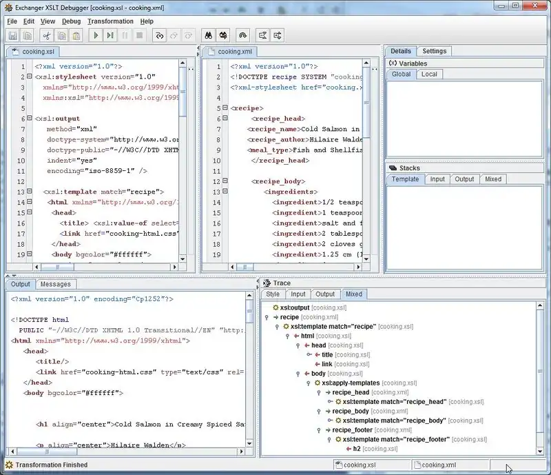 - Beginners just can open it and have a look at the processing traces, i.e. understand what elements are dealt with by which templates and in what order. Also, the result (e.g. HTML) is displayed.