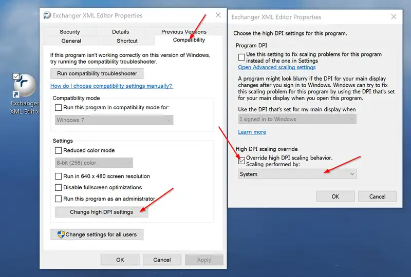 Exchanger XML Editor 3.3.exe - Right-click on the shortcut -> Properties