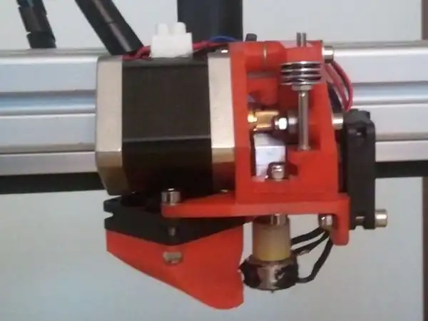 I suggest, however, one modification to the design. Replace the screw that holds up the extruder arm with a longer one. The default short one can slip out and then you will have find all the washers again. In the plastic box delivered with the printer I found a screw that fits, although there is only space for a single bolt as you can see in the picture below (ok with me)...