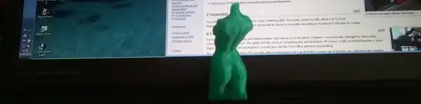 The third print (again using default settings) was 3D character of a serious game made by a co-worker and that I put on top of a DUPLO block. The model wasn't specifically made for a 3D printer (had some serious overhangs), but came out fairly ok. The horizontal overhangs did not print very well, but that is expected without using any support structures...