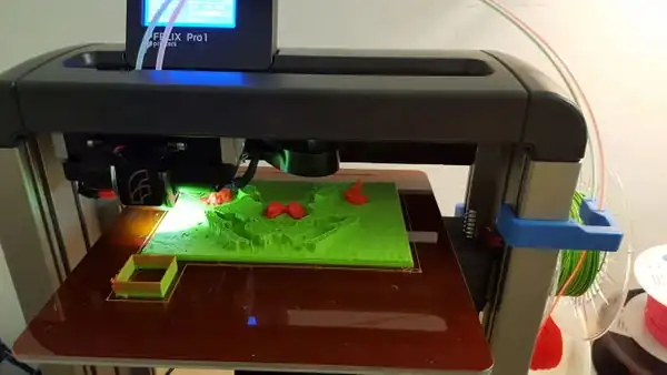 Update: Jan 2019. I upgraded the Pro 1 to a Pro 2. Print quality seems to be better. I did manage to rip off the extruders while printing large DEM models with lots of peaks and the machine went on printing for hours since it was an overnight print. After that I had a Z-sensor problem that is due to distorted geometries. Instead of repairing, I upgraded...