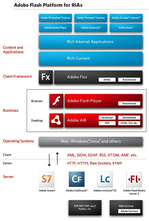 - Adobe has a global Flash framework that includes e.g. a Flash Media Server Family.