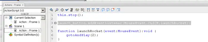 function go FrameA (event:MouseEvent) { gotoAndPlay(2); }