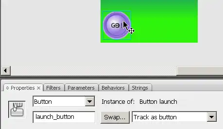 Next, from your library panel simply drag the button on the stage. This will create an instance of the button. To remove it from the stage, select it and hit the delete key. You will see in the properties panel something like Instance of: rounded orange and you now should give it a name, e.g. my_button.