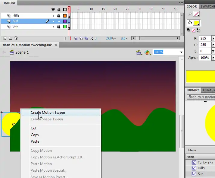- flash-cs6-motion-tweening.fla (includes the sun animation)