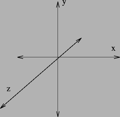 You can picture the "normal" 3D coordinate system with the right hand rule: "x" is your thumb, "y" the index finger, and "z" the middle finger.