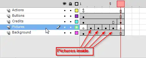 Your timeline and layers will later look like this. For the moment, just look at the pictures layer