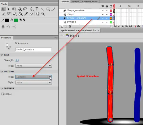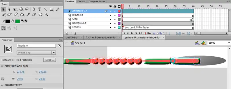 - Source: symbols-ik-armature-intro.fla (Notice: Magnify to 400% if you want to play with it, the bevel filters do seem to have a strange effect on selection).