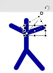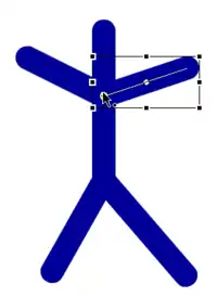 In the following screendump we have a picture of a stick man and we'd like turn his right arm. To do so: