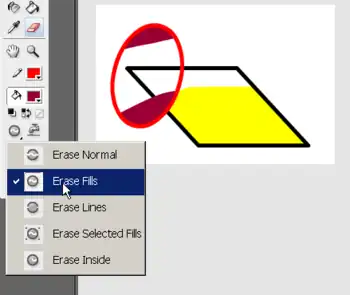 - Erase inside: Will erase fills inside an object if you start erasing inside the object.