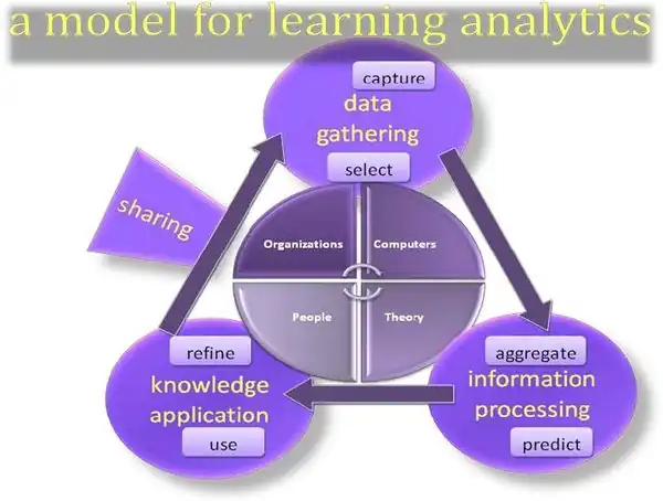 According to the author (Elias:11) learning analytics consist of computer, people, theory and organizations. “Learning analytics uses of four types of technology resources to complete ongoing pattern of three-phase cycles aimed at the continual improvement of learning and teaching” (Elias, 2011:17).