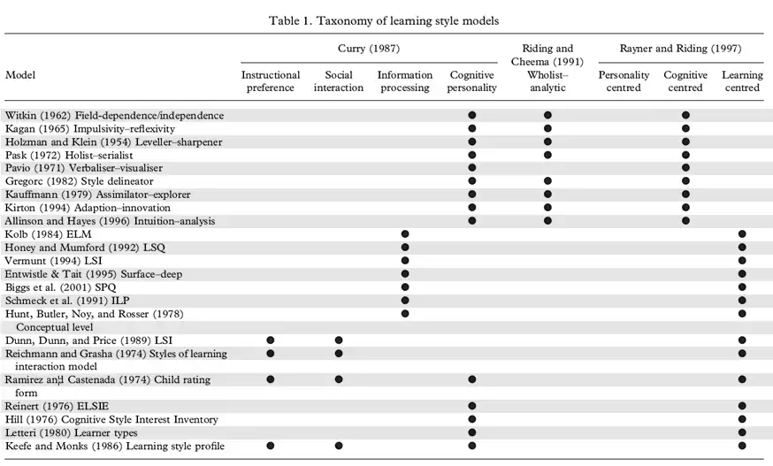 An extensive taxonomy of many of the learning style models described here and some others was put together by Cassidy (2004).