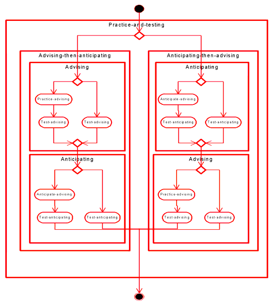 UML is a kind of qualitative data analysis tool with which various kinds of designs can be expressed. E.g. the following picture from the IMS LD Best Practice specification shows a diagram for competency-based learning with two major alternatives, advising-then-anticipating and anticipating-then-advising.