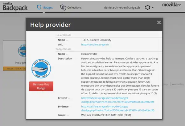 - Badges (Moodle v. 2.6). This documentation is well done.