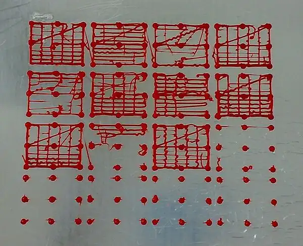 Unlike skeinforge, this software works with a calibration procedure. For each kind (an color) of polymer, you will have to print out 16 calibration squares whose walls you then have to measure with a caliper.