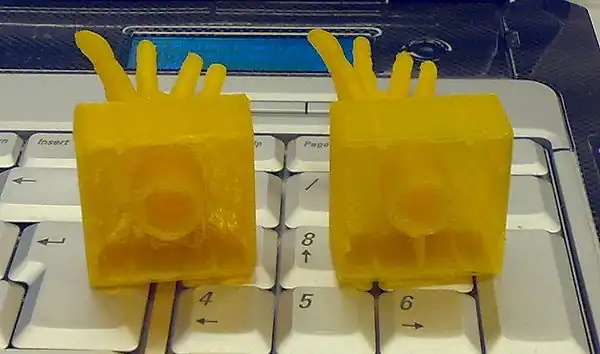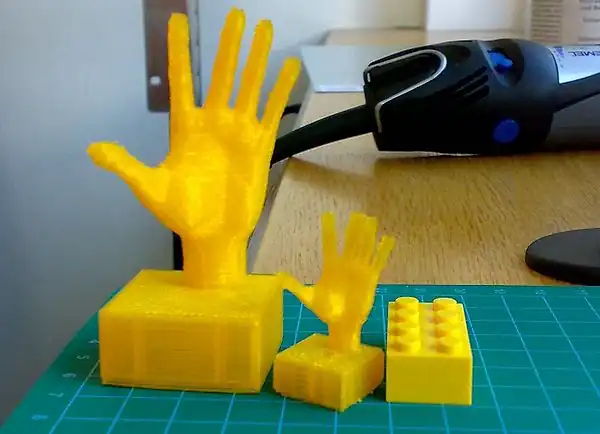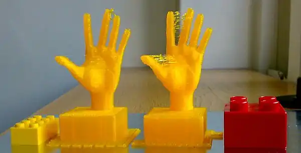 When I print the same object in Lego size (x,y,z divided by 2) both have trouble printing the Lego block more or less correctly. The hand is surprisingly well done for both given its size (but better with Netfabb).