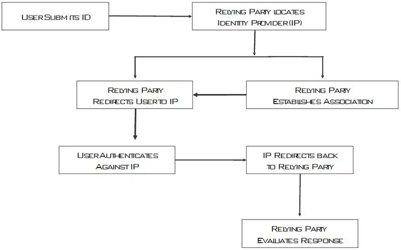 In simplified terms: The end user presents an identifier to the relying party. The Relying party then discovers an OP Endpoint URL from the identifier URL and both the relying party and the OP create a cypted channel for message exchange. Next, the end user is re-directed to the OP for verification of the authentication request. The OP then tells the relying party if the authentication is approved are rejected.