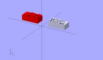 The parametric Lego/Duplo block on the other hand (thing 2014) does include parameters, e.g. you could call it like this for a small 2x2x3 brick with nibbles.