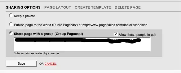 - World: You can share a page with the world, and in addition allow other persons (team) to modify contents, see next item.