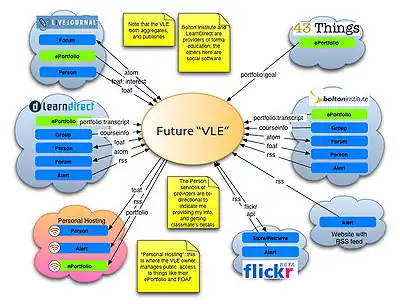 PLEX - Personal Learning Environment project is based on discussion of models for future VLEs. Scott Wilson presented (in several talks) what he calls the visual interpretation of a "VLE of the Future" realised with present technologies and services:
