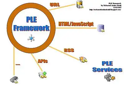 Chatti, in his PLE Links and Towards a Personal Learning Environment Framework post also presents a general PLE framework that emphasized the idea that a PLE is an application integrator. It raises the important question how and whether to specify "PLE services". “To the technical question of how PLEs can be best deployed, I believe that the challenge is how to design a PLE as an extensible framework that can be complemented with different supporting components. [...] Learners should be able to copy&paste, drag&drop and mash third-party services directly into their PLEs based on their needs and with a minimum effort.”, [3], retrieved 16:26, 23 May 2007 (MEST).