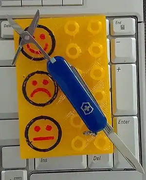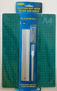 Alternatively or in addition you may buy a cutting mat and cutting knives. The former is to avoid cutting into your table and the latter can be used instead of the small army knife. I bought a kit for about 6 Euros.