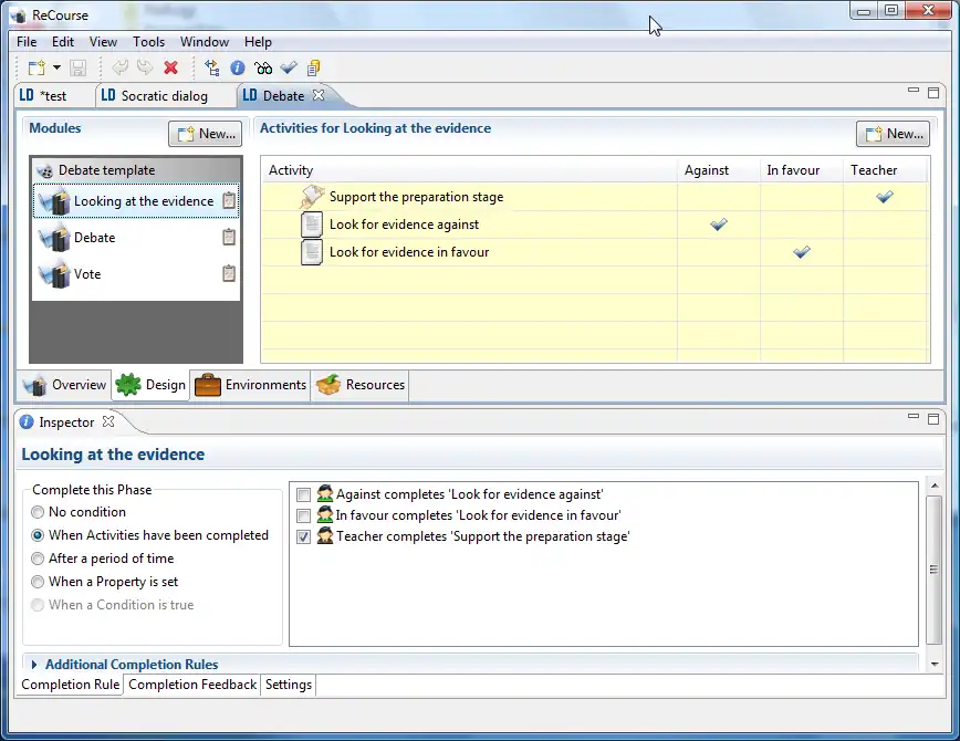 This editor is implemented with Eclipse, needs Java installed on your computer and should run on all platforms. Users should be familiar with the IMS learning design language, i.e. understand its logic and the purpose of its most important elements.