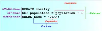 - Clauses which are (in some cases optional) constituent components of statements and queries.[1]
