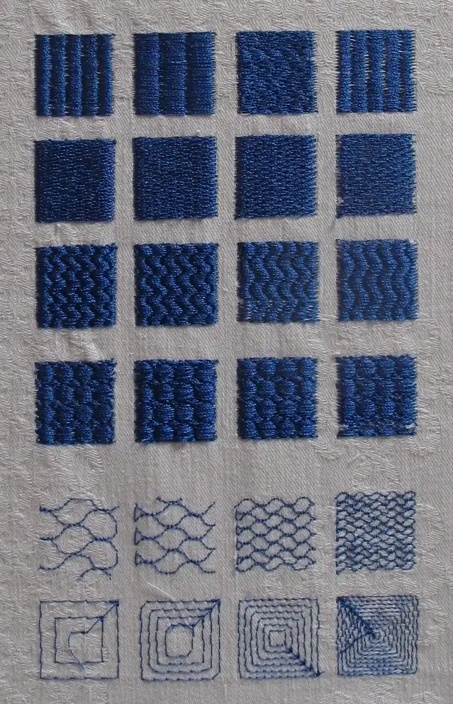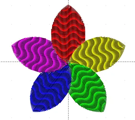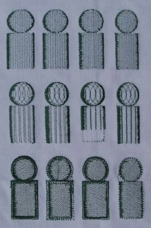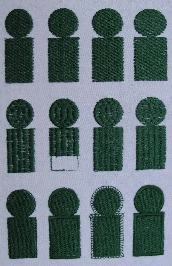- Medium sized areas are usually filled with so-called patterns, i.e. compact fill stitches using various simple or complex designs.