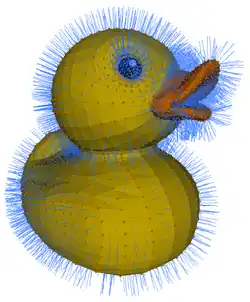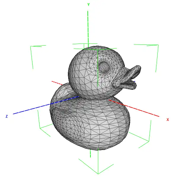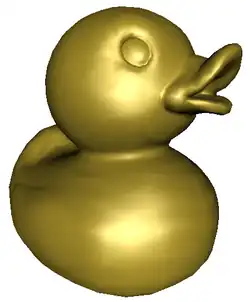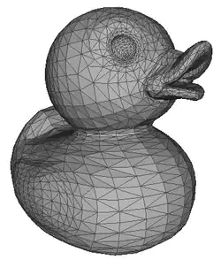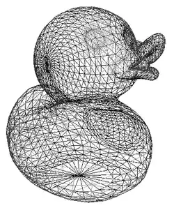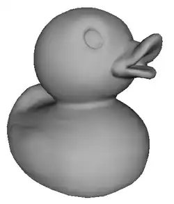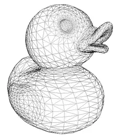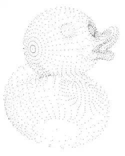 Let's have a look at a little duck. It's made of 2108 dots (vertices) and 4212 faces. Most of these can be found in its eyes and mouth.