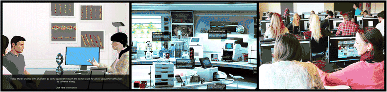 - ↑ Makransky, G., Bonde, M. T., Wulff, J. S. G., Wandall, J., Hood, M., Creed, P. A., … Nørremølle, A. (2016). Simulation based virtual learning environment in medical genetics counseling: an example of bridging the gap between theory and practice in medical education. BMC Medical Education, 16(1), 98. https://doi.org/10.1186/s12909-016-0620-6