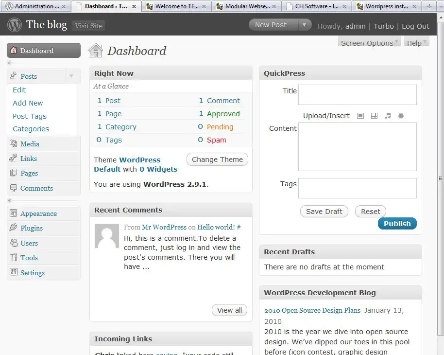This is a very outdated short installation and configuration manual which may be update in some far future. Please, read the fine official Installing Wordpress. The only reason I created this article, was to to have a short piece I could use with a projector in a web applications class and give out as handout. Personally I don't use Wordpress, but I think that it is one of the best systems to get started with the world of CMSs - Daniel K. Schneider 16:31, 19 January 2010 (UTC)/ 15:43, 13 September 2016 (CEST)~
