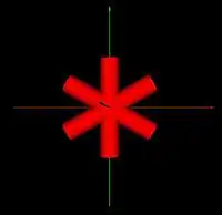 The following example builds six spikes of a wheel with three cylinders. We define a first cylinder like this: