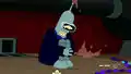 As Bender was serving Michael Collins Mix, he realized that Fry and Hermes weren't in the building, so he figured he didn't need to wait for them and decided to get the party started. A lot of characters from earlier episodes had been invited, the DJ Robot was playing "The Boogie That Be" by The Black Eyed Peas and both the hookers and the Elvis impersonators were there. The party seemed to be going well.
