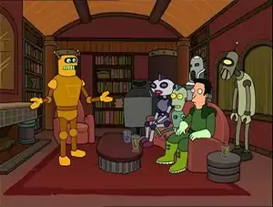 - The acting unit second from the left is seen on the news in "Mother's Day", and again in the throng of robots listening to Mom's speech.