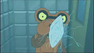 - After the start of the introduction and a new caption, Roberto says "previously on Futurama" then stabs the camera in his cell in the HAL Institute before the recap begins.
