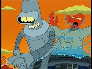 Bender got into trouble when he began abusing electricity (jacking on), and his friends were not in favor of it. Saddened by their discontent, he sought new opportunities in religion. He joined Robotology, but this only served to make him more annoying to his friends. So they decided to make Bender sin to become his regular self again, inadvertently condemning him to Robot Hell. Feeling guilty, Fry and Leela tracked Bender down and saved him from the Robot Devil.