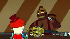 The unnamed Chainsaw-Eating Robot is a Robo-Hungarian immigrant in New New York who works in Circus Roboticus under Fishy Joe.