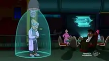 Professor Farnsworth: Deciphering that ID code is critical. I'll be in the Chamber of Understanding. [A glass dome is lowered over him. A small disco ball is lowered from that. We can hear disco music.]