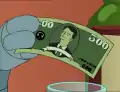 Currency in the 31st century, at least originating from the United States of America, seems to still be dollars. Most notes look just like they are today, and each one of them has the face of an important individual on it. The $1 note has George Washington,[6ACV19] the $5 note has Abraham Lincoln,[ItWGY] the $10 note has Benjamin Franklin,[3ACV11] the $20 note has a Blob, possibly H. G. Blob, saying it is "legal tender",[BBS] the $30 note has Braino,[6ACV17] the $300 note has Richard Nixon,[4ACV16] the $500 note has Al Gore,[2ACV07] and the $1000 note has, once again, Richard Nixon.[3ACV11] The coins also seem to be similar to what they look like today.