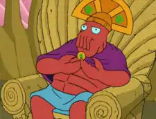 Decapodian Emperor: It is settled! Fry and Zoidberg will fight to the death for the claw of the beautiful Edna.