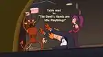 | Volume 4 Disc 4 | Table read for "The Devil's Hands Are Idle Playthings" | Go onto "The Devil's Hands Are Idle Playthings" on the main menu, press up and wait till the Robot Devil's hands appear. Click enter. | ![]() |