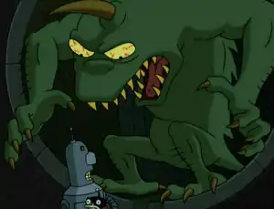 El Chupanibre is a sewer monster who once terrorized the mutants below New New York. He is a giant green humanoid lizard with massive yellow teeth and claws. He was flushed down a colossal toilet to the sub-sewer by Bender in the course of saving Nibbler. But in later episodes, he is seen back in the regular sewers.