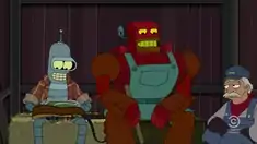 Fast Frank Brogan is a man that Bender met when he was on a train to a railroad camp, in 3013. [7ACV14] Dr Beeler's 3-D printer may have made a copy of him, after Bender presumably wrote him into his song. The copy was likely later killed in an accident.