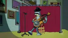 When the crew tell Bender that he doesn't know enough about folk music to be successful, he explains his analysis of "every folk song in the universe": bad-hearted woman cheats on her good man with a rambler. Bender uses this as a formula for creating his own folk songs. He crashes a performance by Silicon Red and performs one of his songs while Red is distracted, billing himself as "Ramblin' Rodriguez". The audience hates it, and Red explains that Bender's song is insincere. He sends Bender away and says, "Don't come back 'til you've lived a life worth singin' about!"