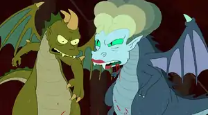 Frydo's attempt to destroy the Die triggered the climax of the alternate story, culminating in a battle between a Frydo dragon and a Momon dragon.