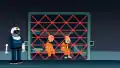URL: [Professor Farnsworth and Dr. Wernstrom are locked in a cell by lasers.] Look alive, death row. Your saggy asses got a visitor. [He turns off the laser bars.]