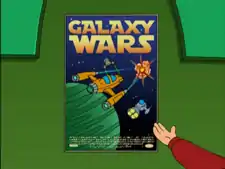 Galaxy Wars is a historical documentary film that was showing at Loew's ℵ0-Plex cinema. [2ACV08] Fry wanted to see it with the crew, but it was rejected by Leela, and instead they watched All My Circuits: The Movie. It was released on video at some point. [4ACV11]
