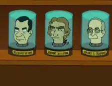 On 9 July, 1947 the time travelling Planet Express ship crashed in Roswell, New Mexico. Dr. Zoidberg was captured and questioned by Truman himself who arrived in Roswell as soon as he heard what had happened. When the Planet Express crew stole the microwave dish and rescued Bender and Dr. Zoidberg, Fry threw Dr. Zoidberg's organs at Truman.