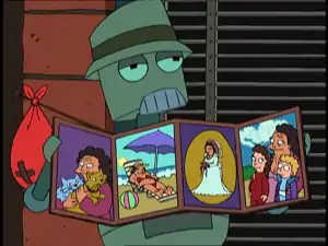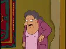 Hattie McDoogal is an elderly woman with a lazy eye. Her memory is fairly poor. She tends to replace words that she doesn't remember with such nonsense words as "whatchacallit" and "kajigger", is the landlady of the building of Dr. Mbutu's apartment (1ACV03), owns one share of Planet Express (3ACV21) and loves her pet cats, one of which she keeps in her purse (3ACV21).